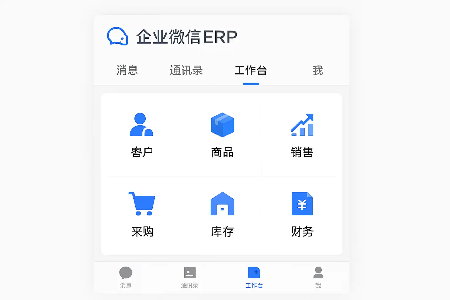 - 完成授权后,在企业微信群聊或工作台即可快速访问并操作该ERP系统。
