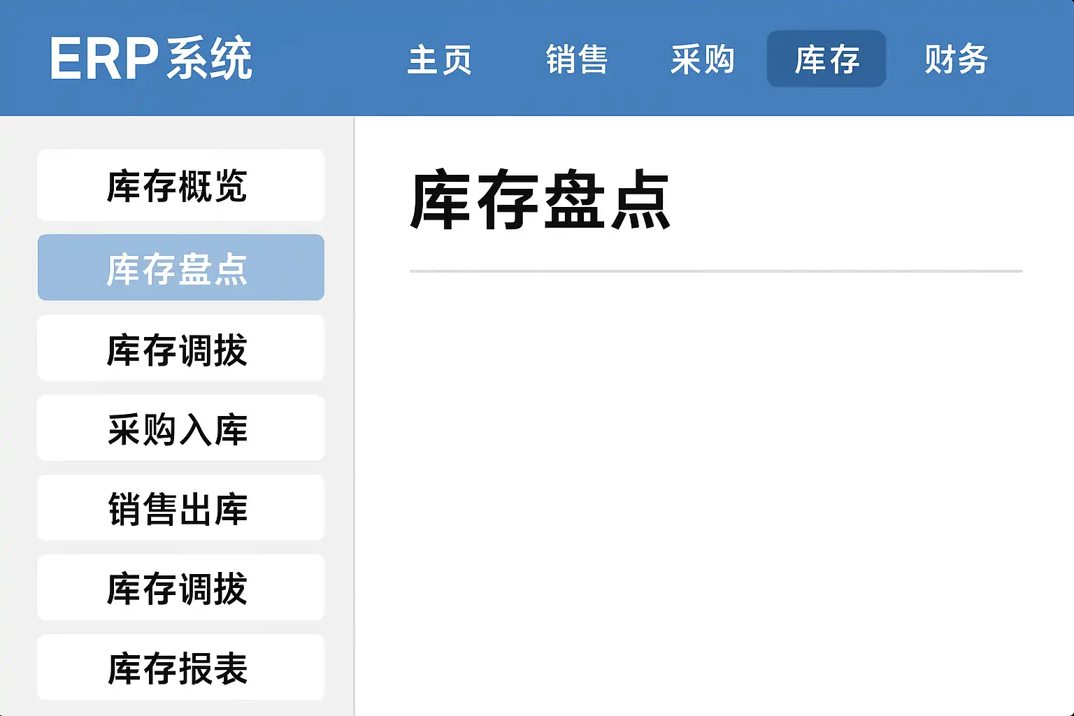 典型ERP系统的功能布局 不同品牌的ERP系统虽然界面风格不尽相同,但其核心模块结构大致相似。一般情况下,库存盘点属于“库存管理”、“仓储管理”或“物料管理”等一级菜单下的二级/三级功能。