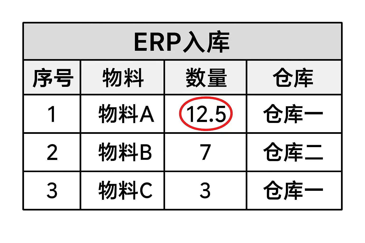 在ERP(企业资源计划)系统中,入库环节涉及的数据类型包括数量、单价和总金额等。这些数据往往需要支持一定的小数精度,以适应不同类型产品(如散装物料、高值零件)的计量需求。核心原理如下: