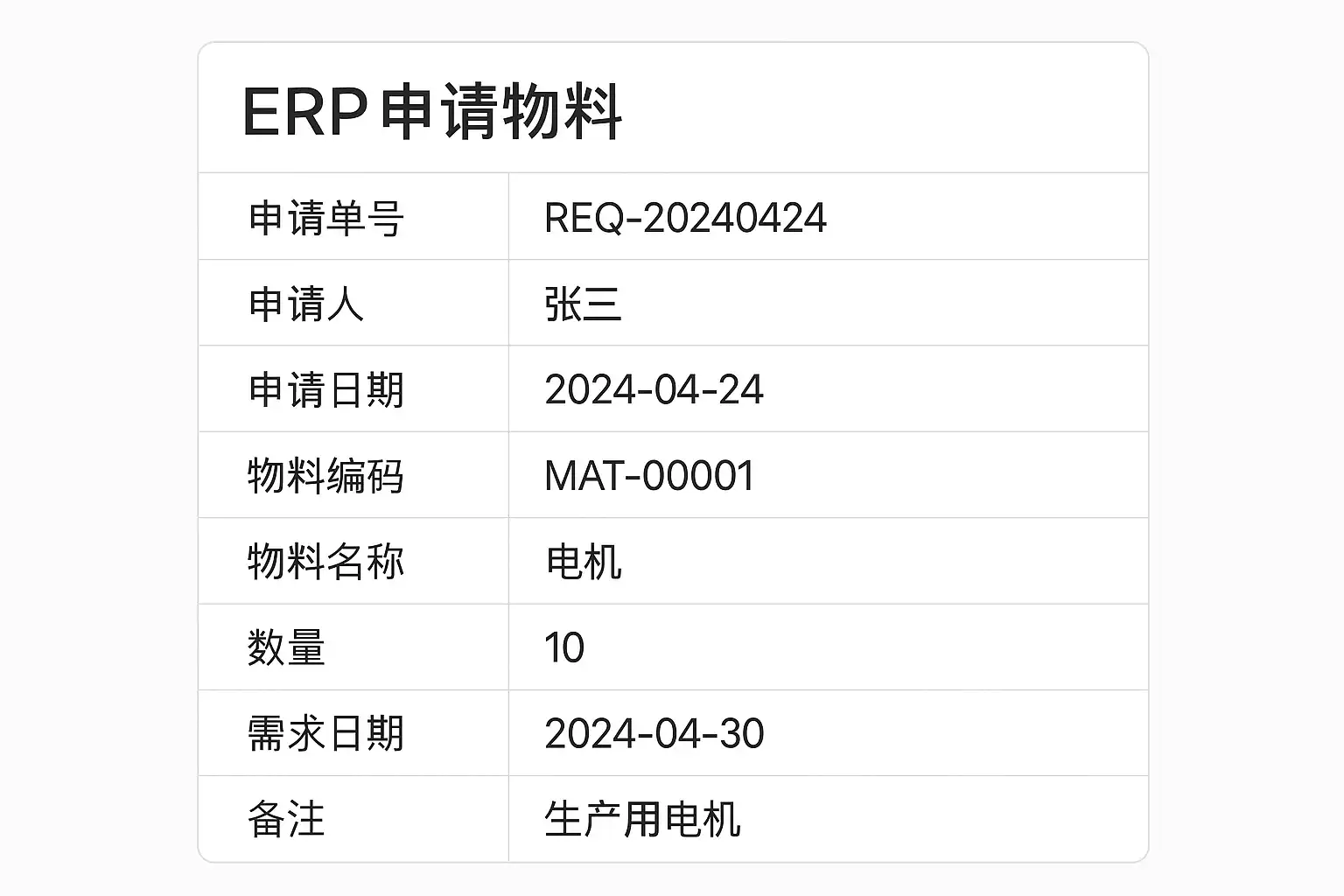 **1、ERP系统中,申请物料的“需求日期”通常在采购申请单或物料申领单的明细行字段内进行填写和显示;2、具体位置依赖于所用ERP系统界面设计,但一般在新增或编辑物料申购单时可以直接录入和查询;3、合理填写需求日期对于采购计划、库存管理和生产排程具有重要意义。**以简道云ERP系统为例,在其采购模块或物资管理模块中,用户在创建申购单时,会在每一行物料明细里看到“需求日期”字段,可直接手动输入或选择,确保后续供应链各环节能够精准响应。企业应根据自身业务流程规范此字段填写,并定期复核其准确性,以提升整体运营效率。