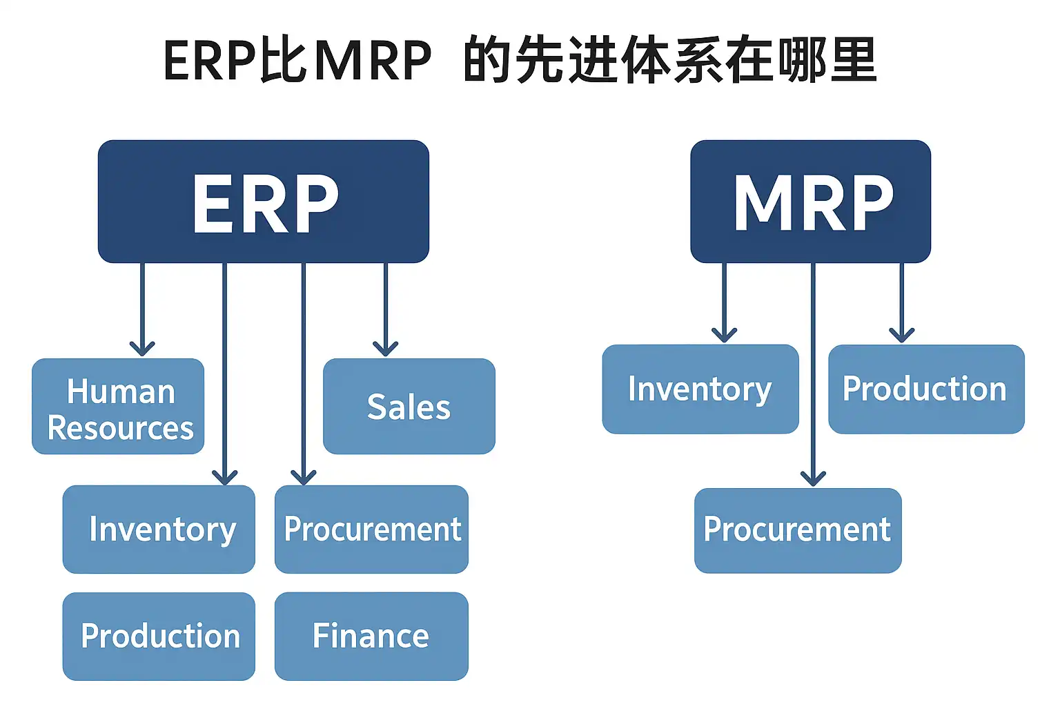 我一直在想,ERP和MRP系统虽然都是企业资源管理工具,但它们的先进性差别具体表现在哪里?ERP系统真的比传统的MRP系统更适合现代企业吗?