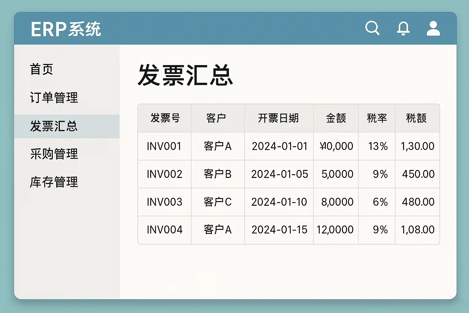 ERP系统发票汇总位置详解,发票汇总功能怎么找?