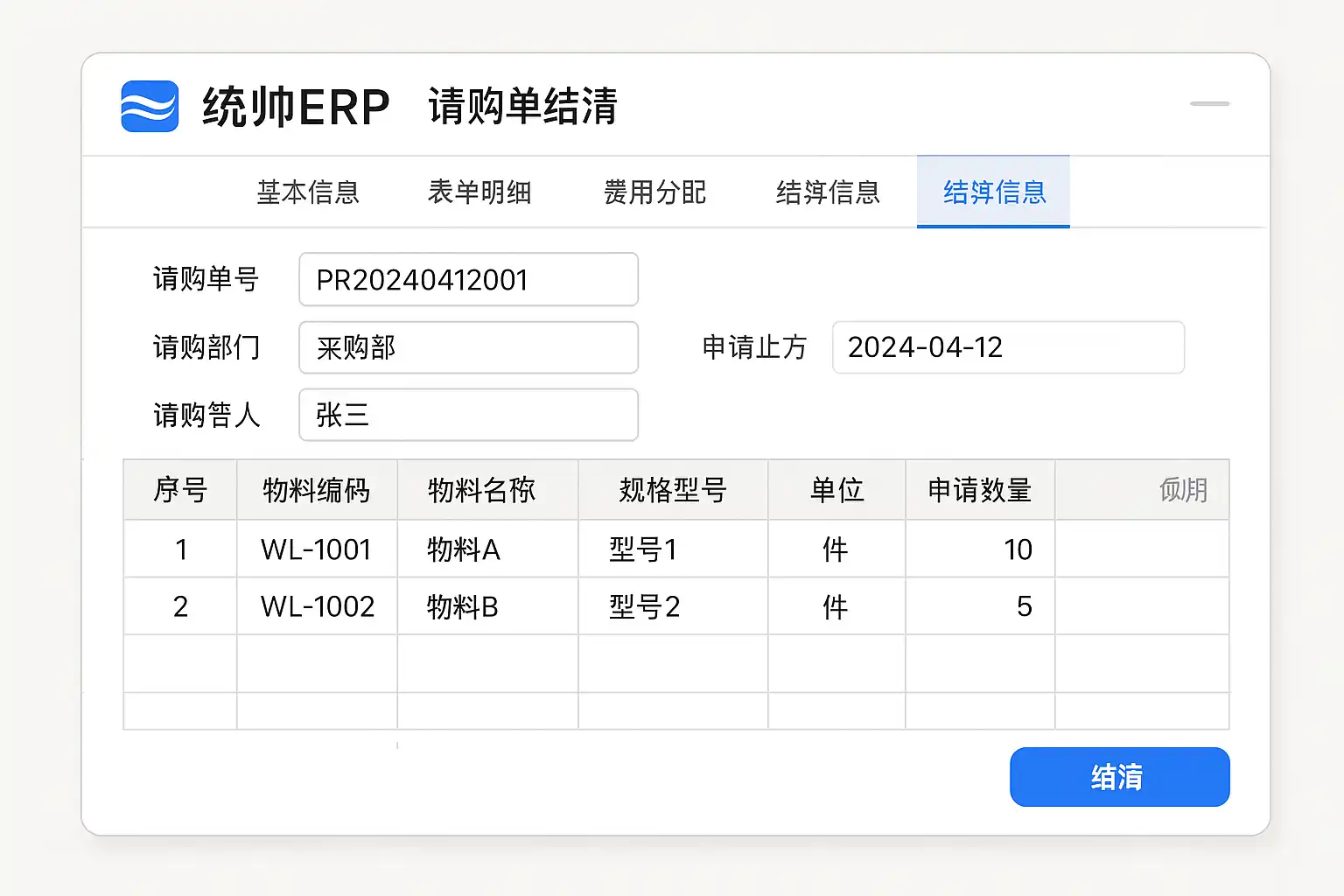 一、什么是统帅ERP中的请购单及其“结清”功能