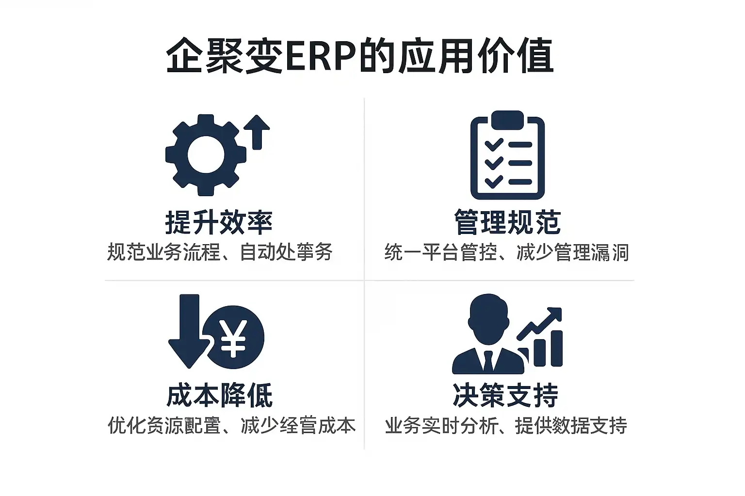 我最近听说了企聚变ERP,但不太清楚它具体能为企业带来哪些实际价值。能不能详细解释一下它的核心应用价值,尤其是如何帮助企业提升运营效率?