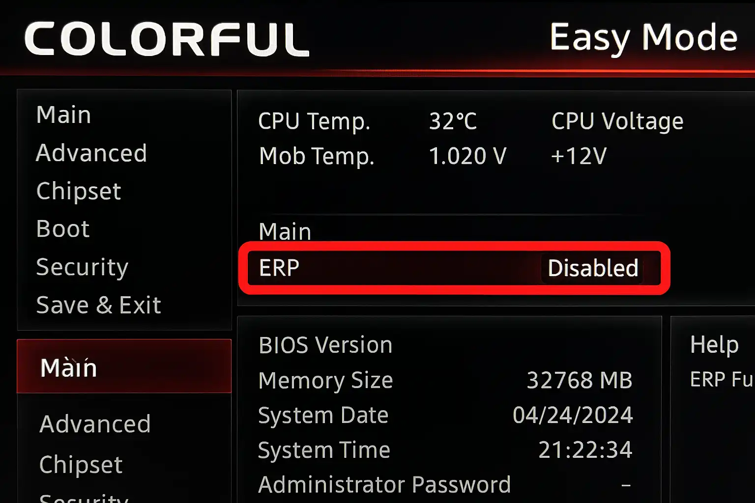 实际案例: 某出口欧洲客户,在批量采购七彩虹主板组装整机时,通过统一调整BIOS中的“ErP Ready”为Enabled,有效满足进口商合规要求,并获得绿色认证标签,提高了企业形象和市场竞争力。