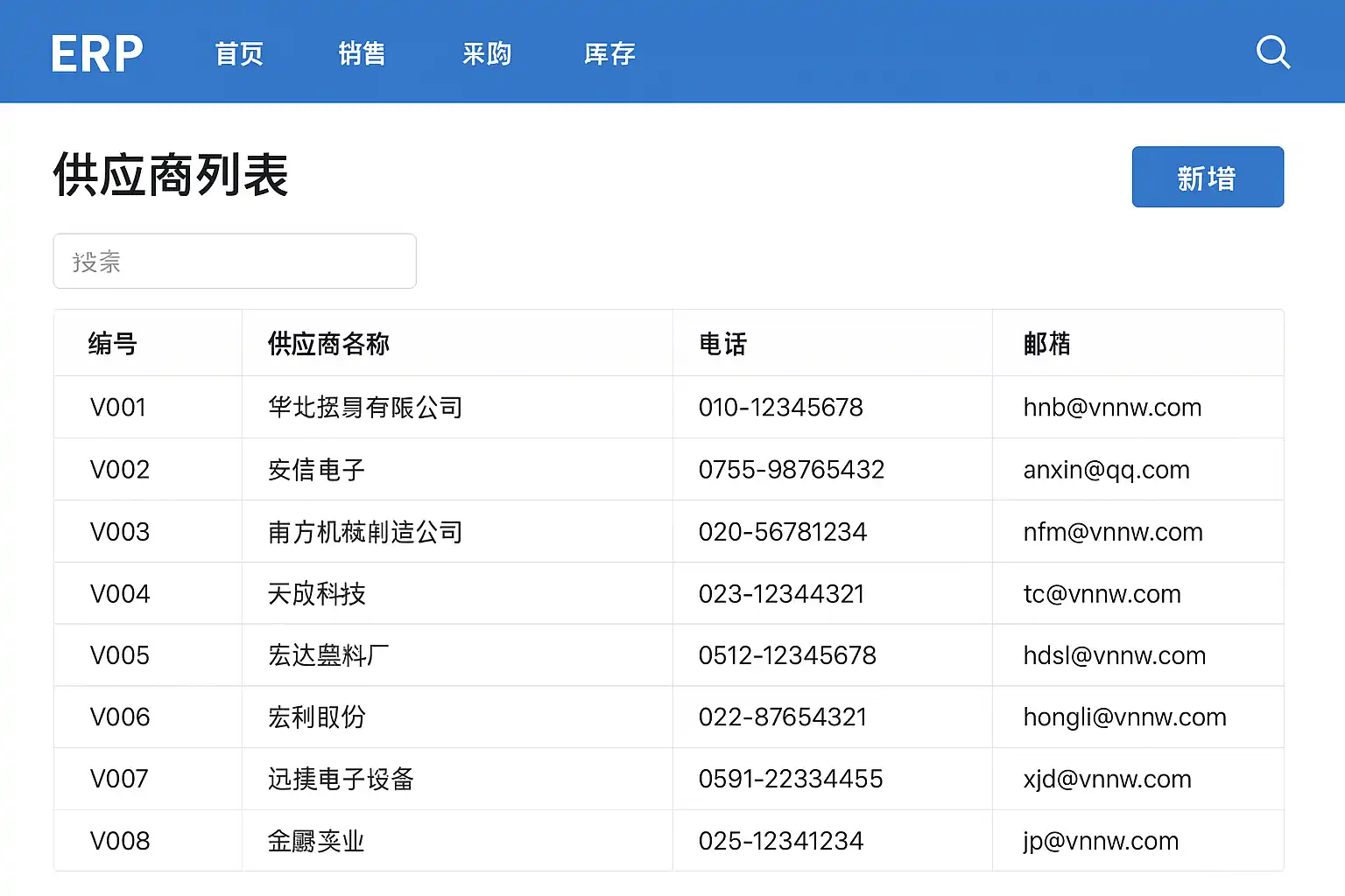 - 部分SaaS类新型ERP支持通过顶部搜索栏输入“供应商”,快速定位到相关页面。