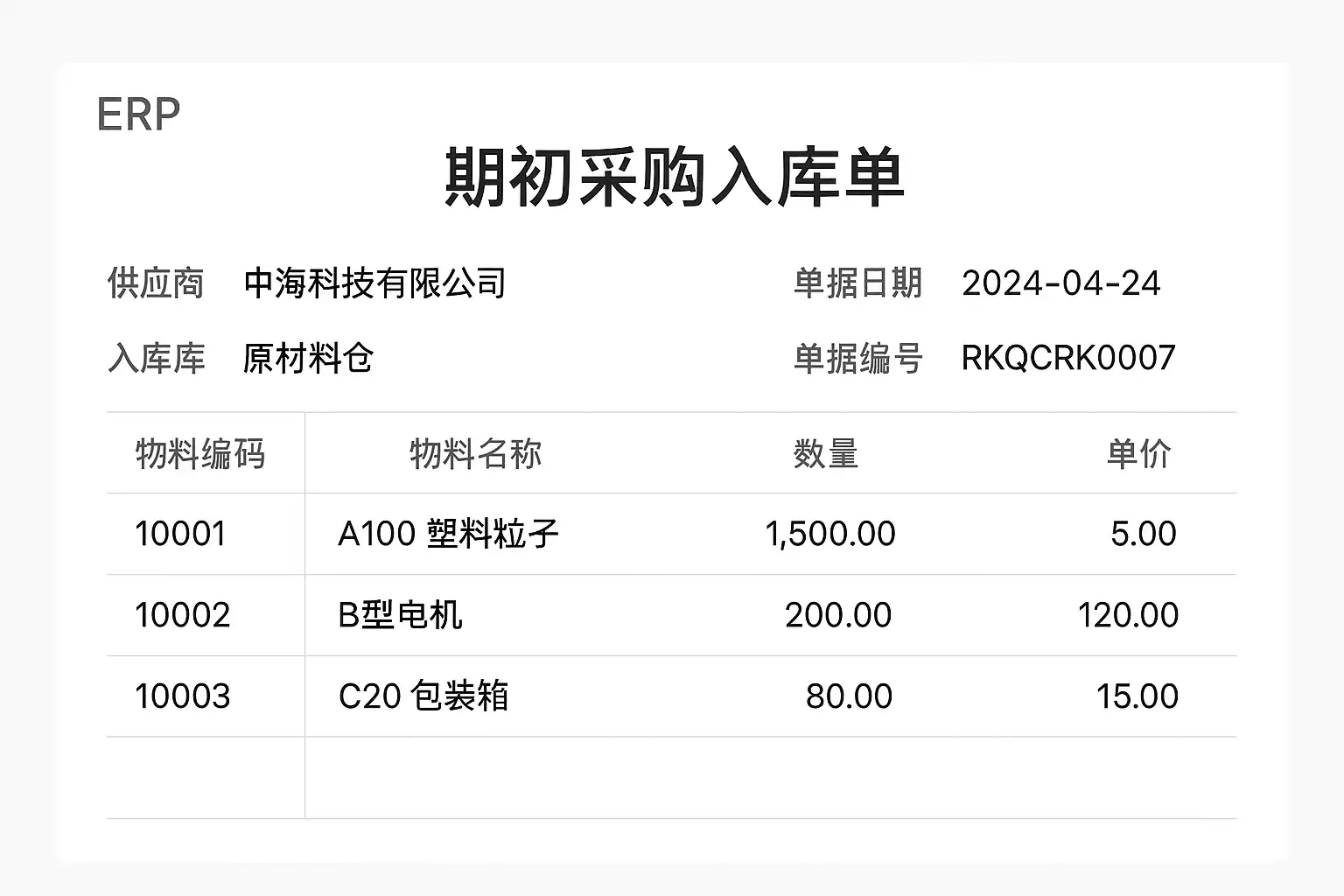 企业在上线新ERP系统时,必须将历史库存及相关采购信息录入系统,这一过程称为“期初建账”。其中,“期初采购入库单”是非常关键的一环,它记录了截止上线日所有已购未销(或未出库)的商品明细。不同厂商的ERP软件界面有所差异,但查找和录入流程大致如下: