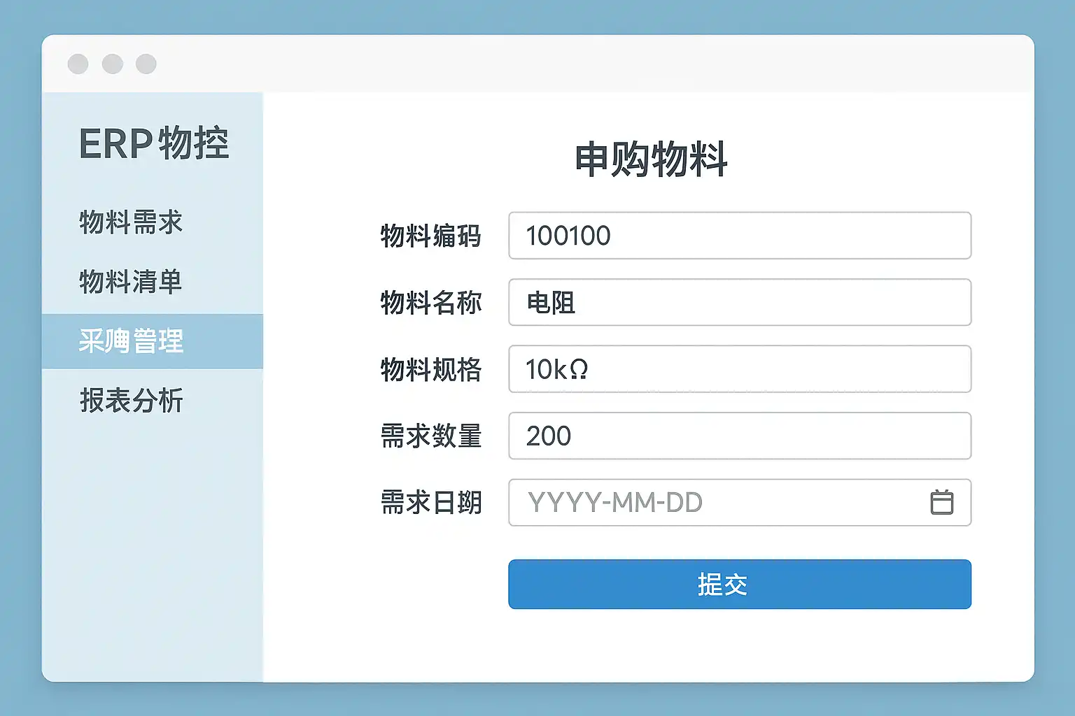ERP物控系统中申购物料的具体操作步骤有哪些?