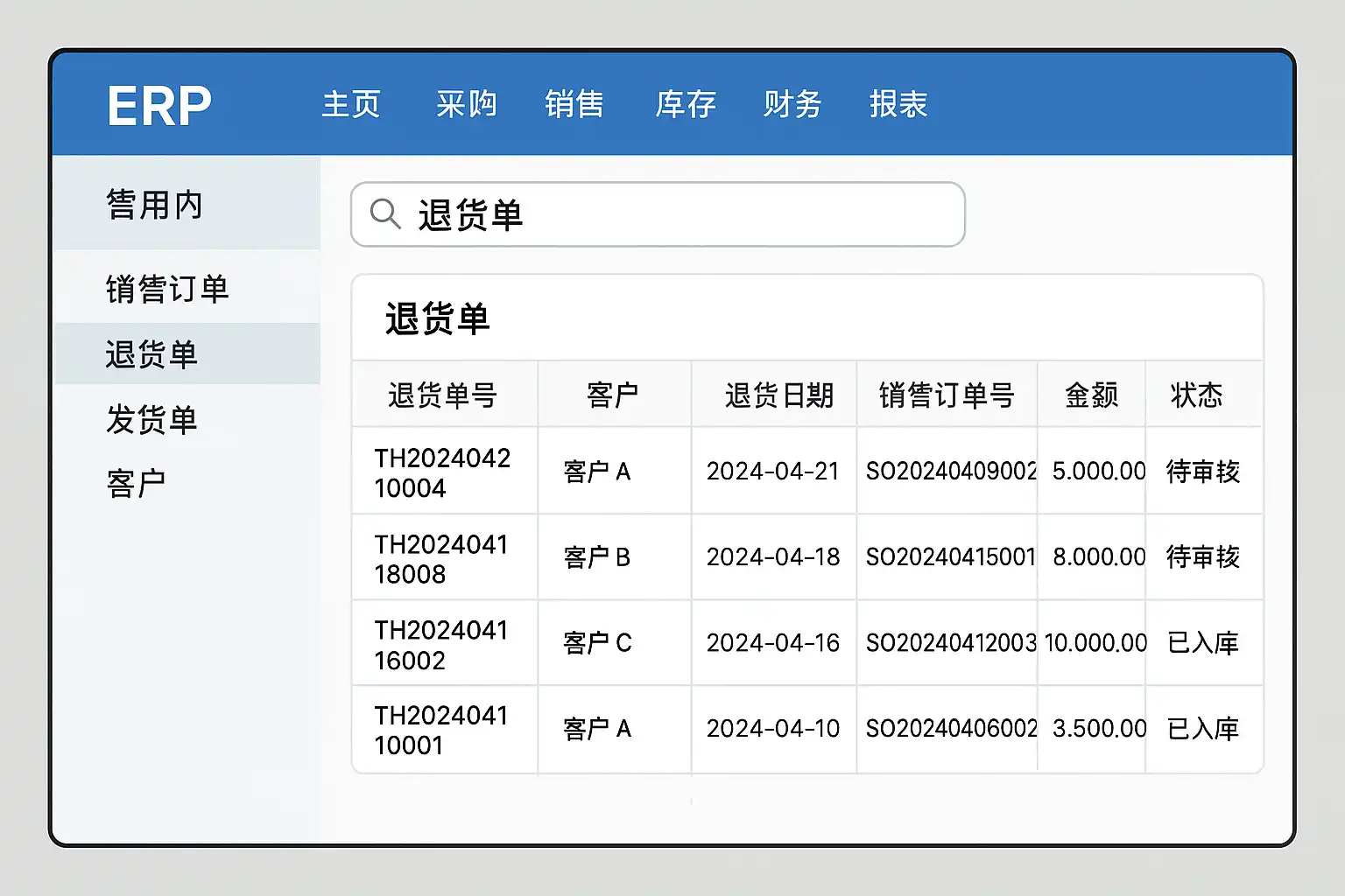 不同厂商和类型的ERP系统界面有差异,但主流产品基本都将“退货单”纳入核心业务流程。以下是常见查找入口: