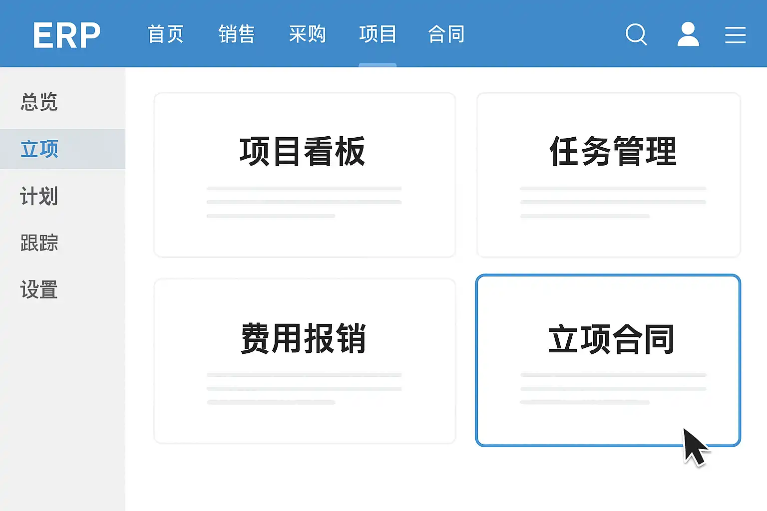 多数现代化ERP(如简道云ERP)支持灵活配置,使得用户可按需设计模块名称、显示字段以及访问权限。例如:若公司重视项目全过程监控,则常将“立项合同”直接附属于某个具体项目下;如偏重法务合规,则多会统一纳入“合同库”集中管控。