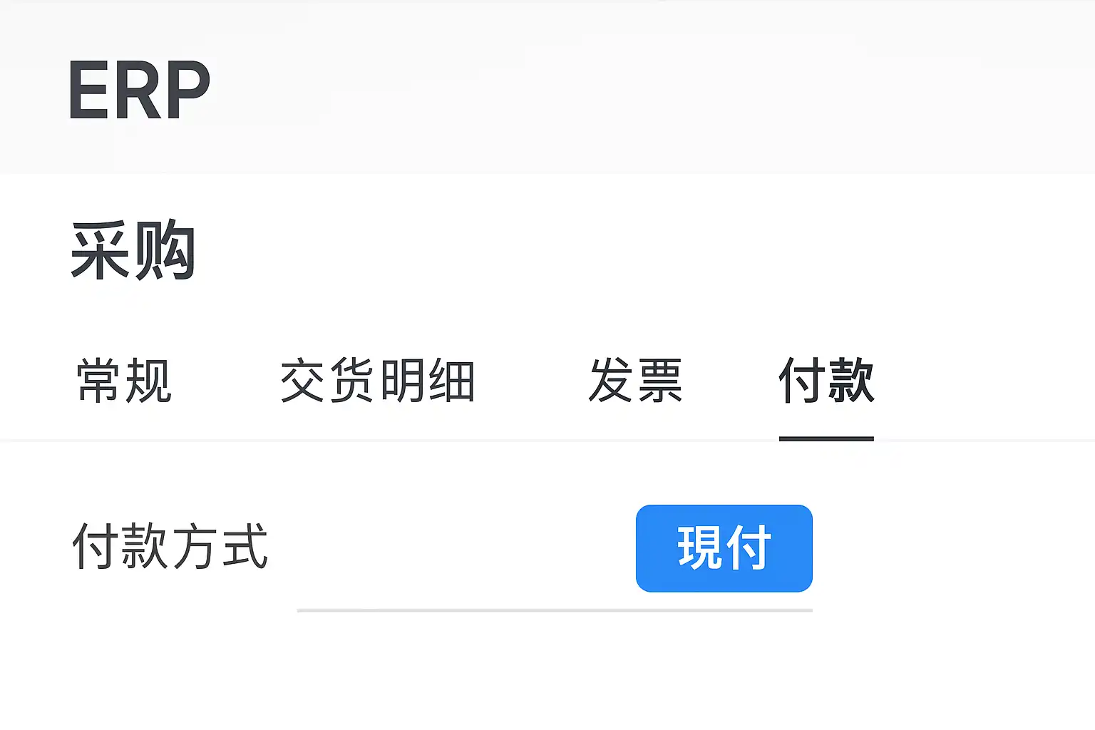 在主流ERP系统中,“现付”作为一种常用支付方式,主要出现于以下模块和场景: