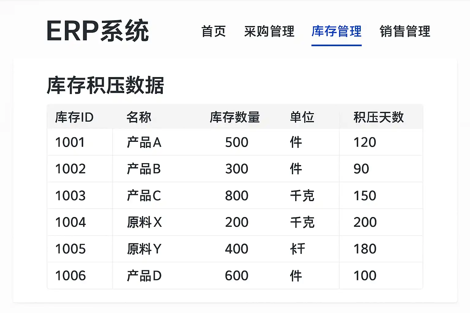 | 呆滞/超储预警报表 | 按设定规则自动筛选出长时间未动用或高于安全上限的存货 | 积压监控及专项清理 |