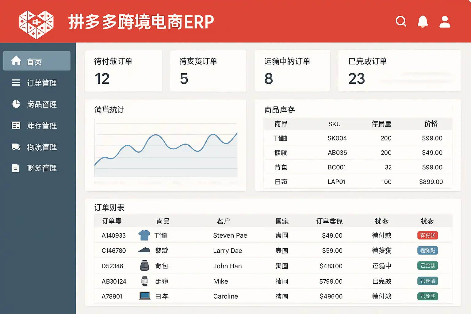 拼多多跨境电商的ERP界面一般通过官方后台或合作的第三方ERP平台进入。具体步骤如下: