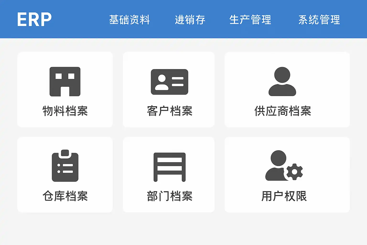 定义 ERP基础档案(Master Data)是指企业运营过程中反复使用的核心信息集合,包括但不限于客户信息、供应商信息、物料/产品信息、员工资料等,是所有业务流程开展的根基。