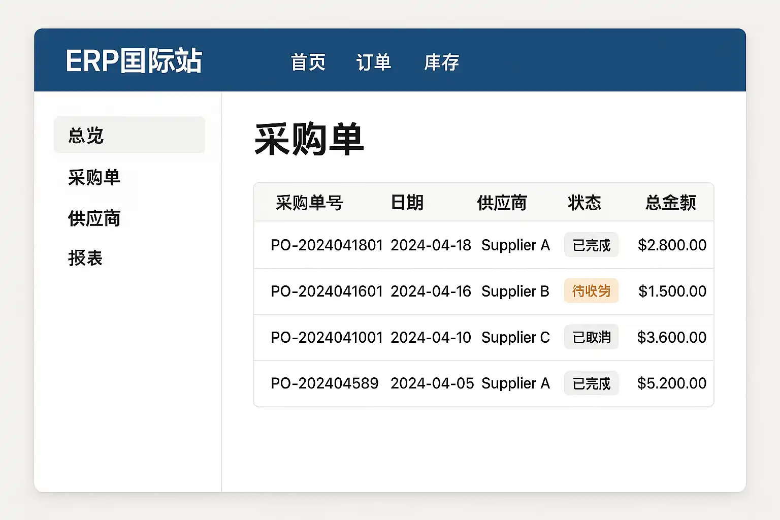 不同主流ERP国际站在订单管理和查询体验上略有差异,下表汇总了几家典型厂商的做法,供参考: