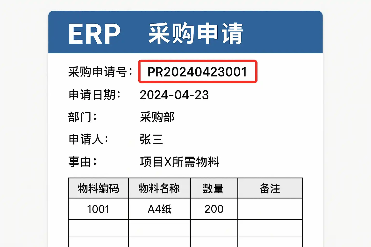 ERP中的采购申请号是每笔购买请求的唯一标识,它具有以下几个关键作用: