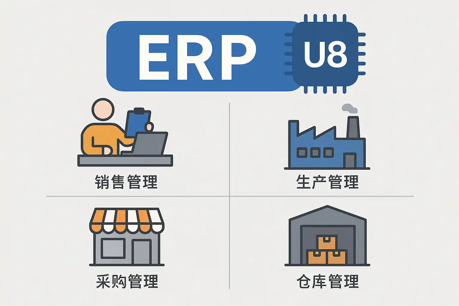 ERP-U8是一款广泛应用于制造业、零售业、批发业及服务业的企业资源计划(ERP)系统。其主要功能涵盖财务管理、供应链管理、人力资源和生产制造等模块。具体应用场景包括:
