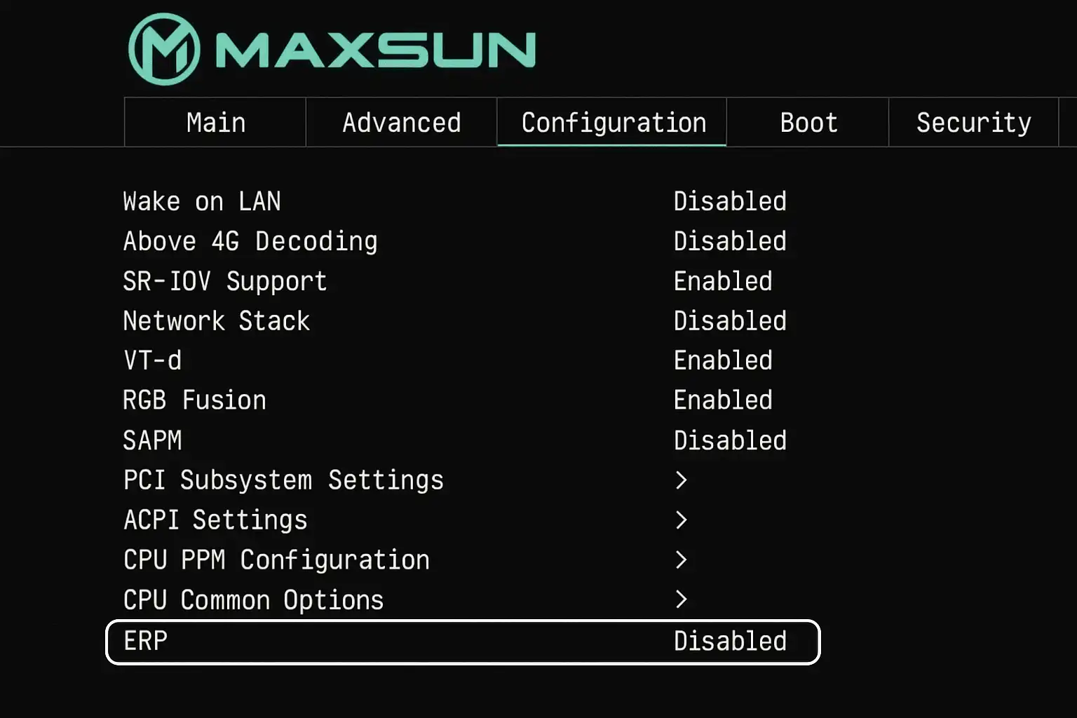 | 3 | 查找是否有名为“ERP”、“ErP Ready”或“EuP 2013”等字样的选项 |