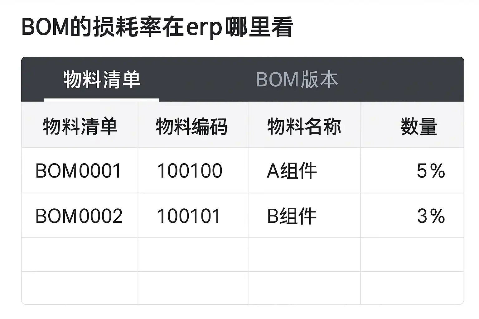 - 物料清单(BOM)维护界面:部分ERP支持直接显示预计损耗率。