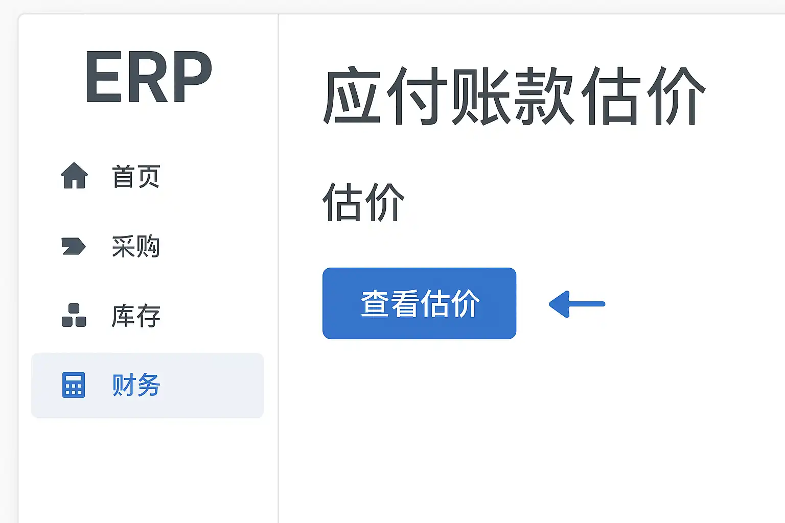 在大多数ERP系统中,应付账款估价通常位于“财务管理”或“应付账款管理”模块下。具体步骤包括: