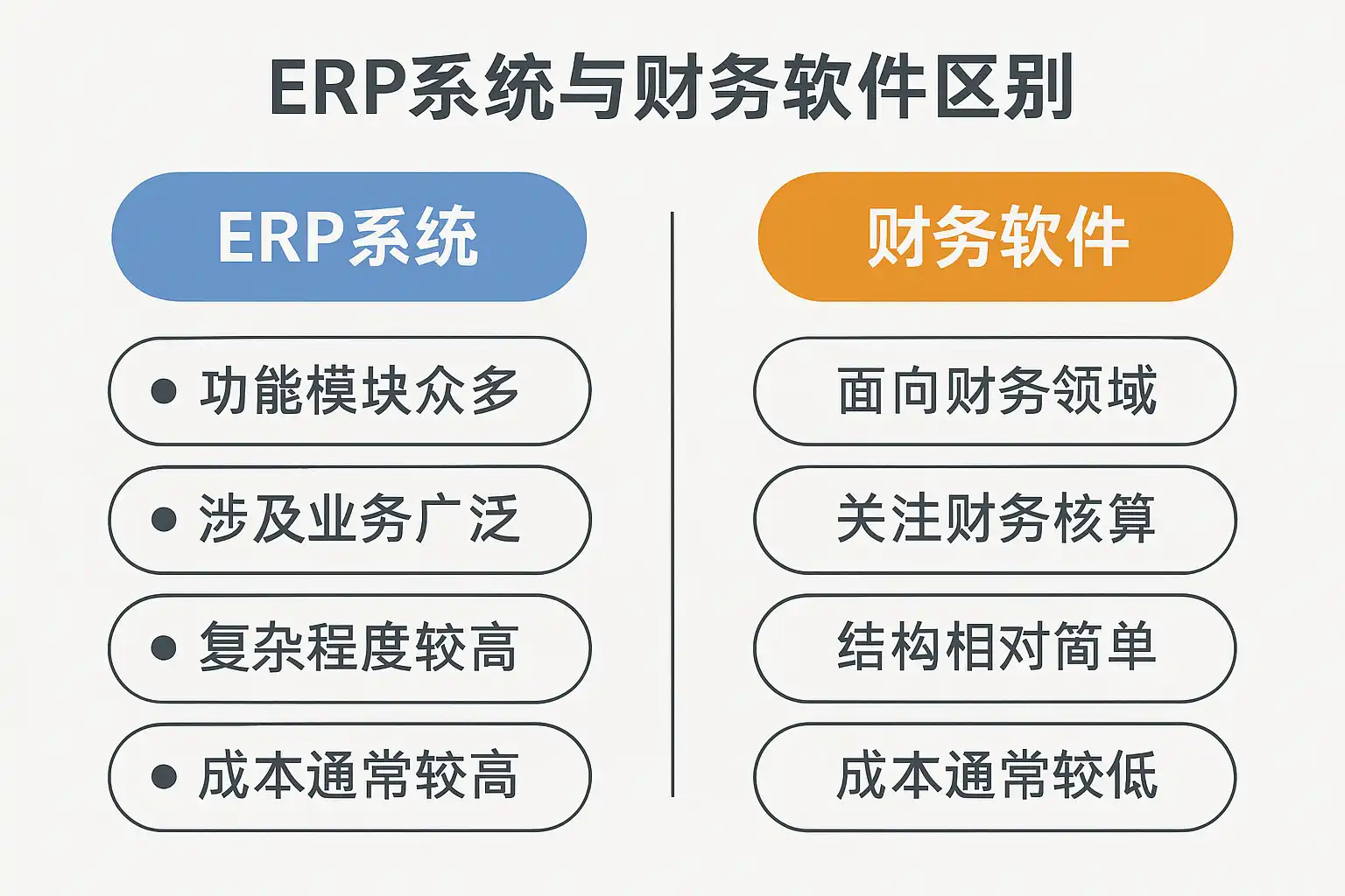 我在选择企业管理软件时,总是分不清ERP系统和财务软件到底有什么不同。它们的核心功能和应用场景分别是什么?能帮我理清楚吗?