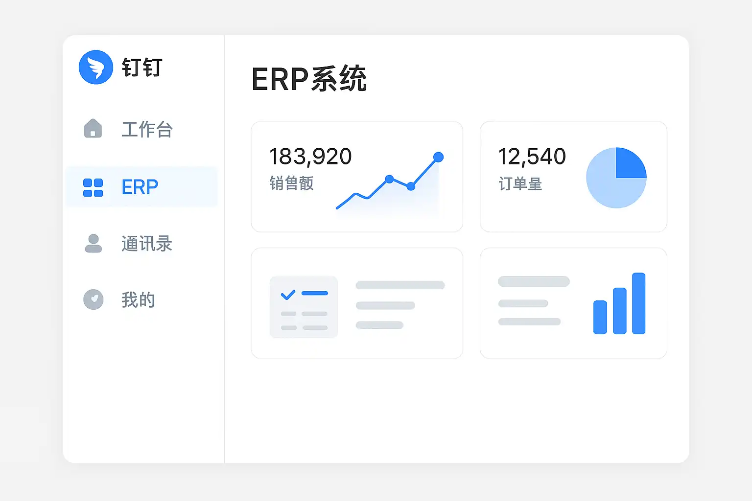 - 钉钉作为阿里巴巴旗下的智能办公平台,为企业提供了丰富的业务数字化工具,其中包括了多种可集成的ERP(Enterprise Resource Planning)系统。