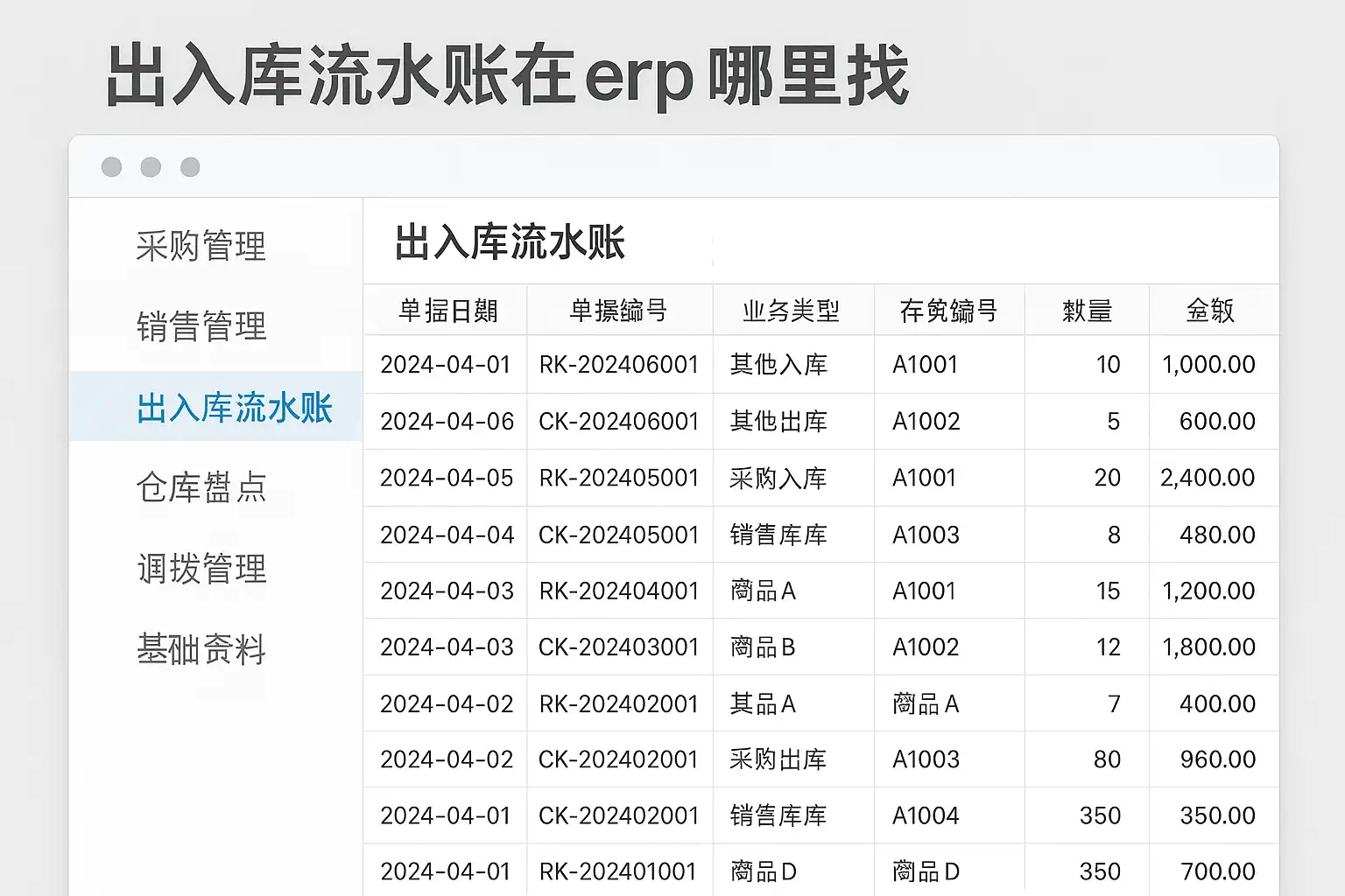 一、ERP中出入库流水账基本概念及作用