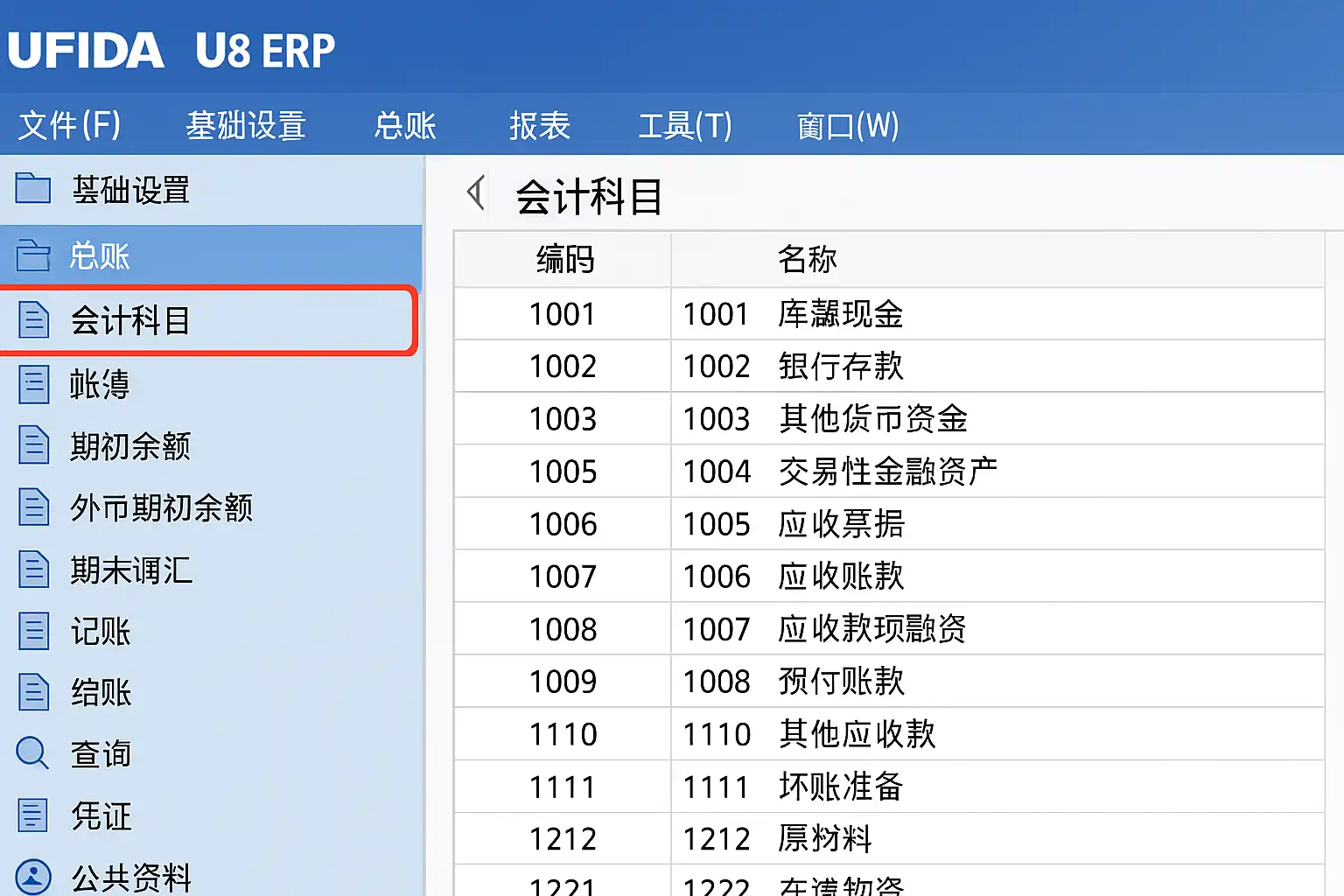ERP系统U8会计科目位置详解,如何快速找到会计科目?