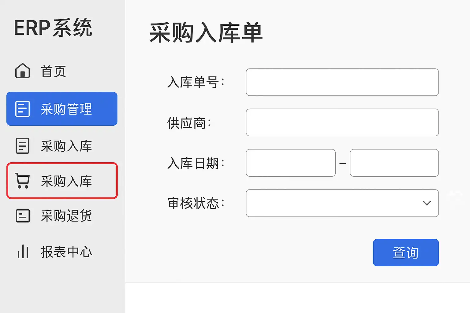 在主流ERP系统中,起初采购入库单通常位于“采购管理”或“库存管理”模块下的“入库单”或“收货单”菜单中。具体路径通常是: