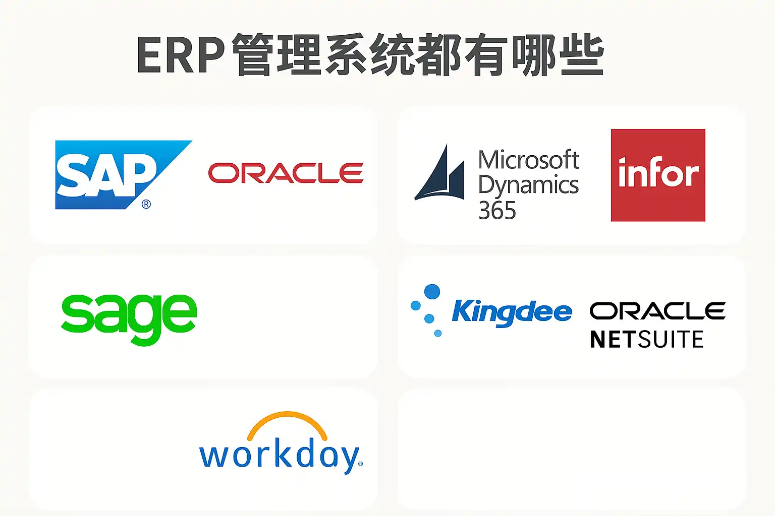 | 国际高端通用型 | SAP ERP, Oracle ERP | 大中型及跨国公司 | 功能全面,扩展性强,成本高 |