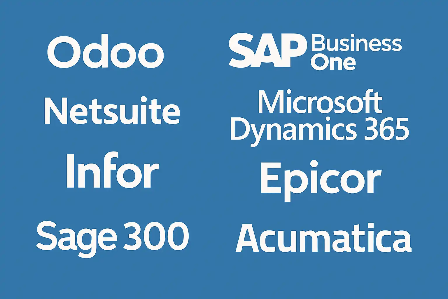 下表整理了一些被普遍认为名字好听且广受欢迎的主流ERP系统: