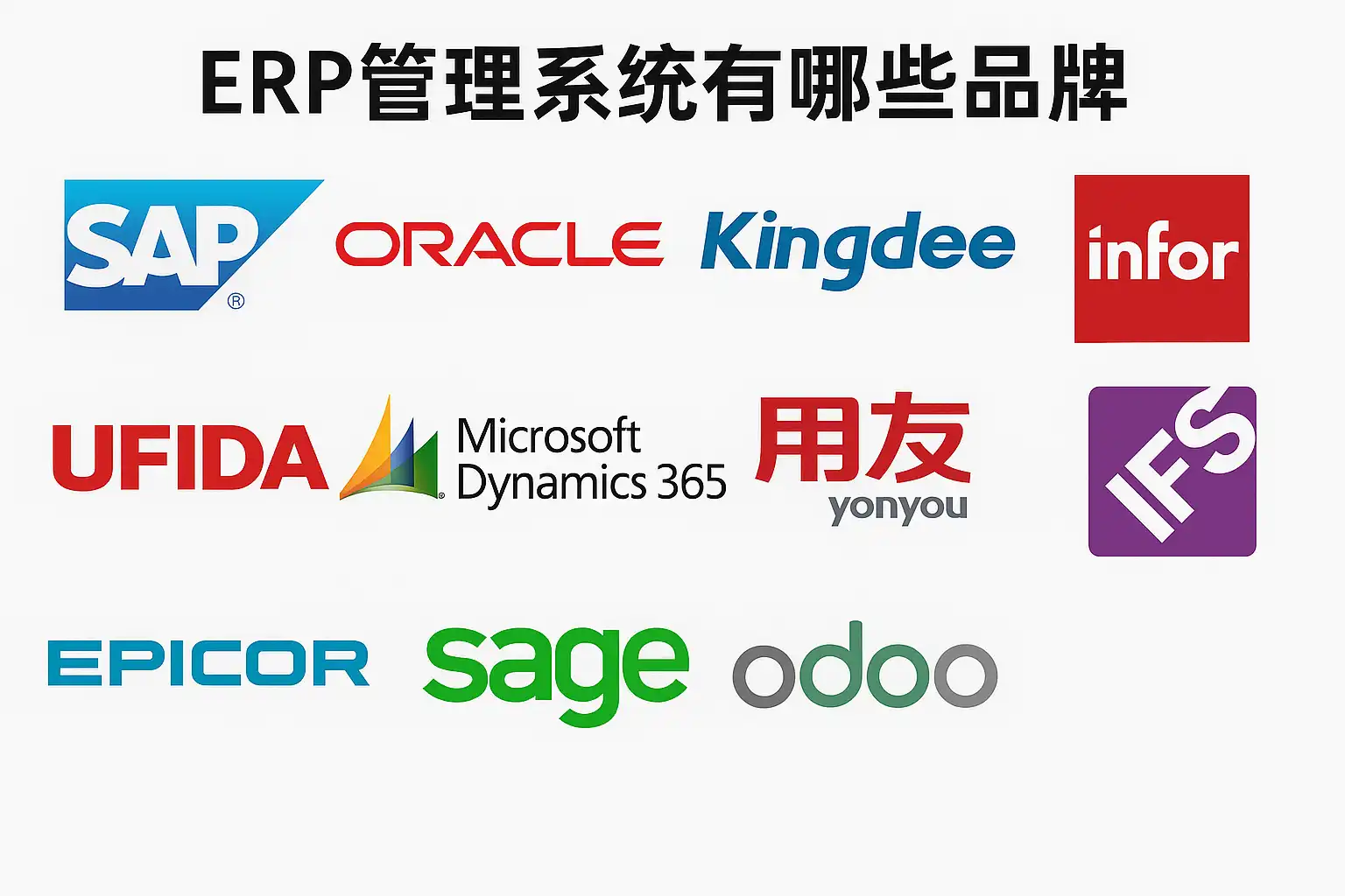 - 用友(Yonyou):中国本土领先品牌,覆盖制造、零售等多个行业。