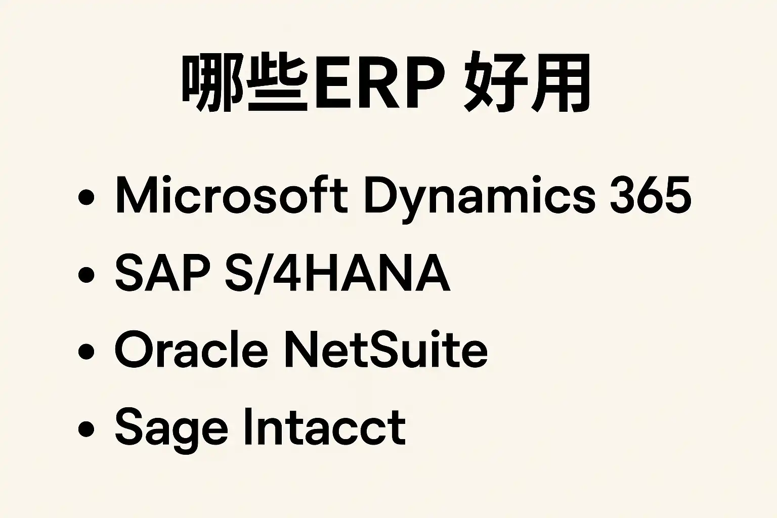 上市集团或跨国公司: 优先考虑“SAP ERP”、“Oracle ERP Cloud”,侧重于全球合规、高性能数据处理及复杂财税结构支持。