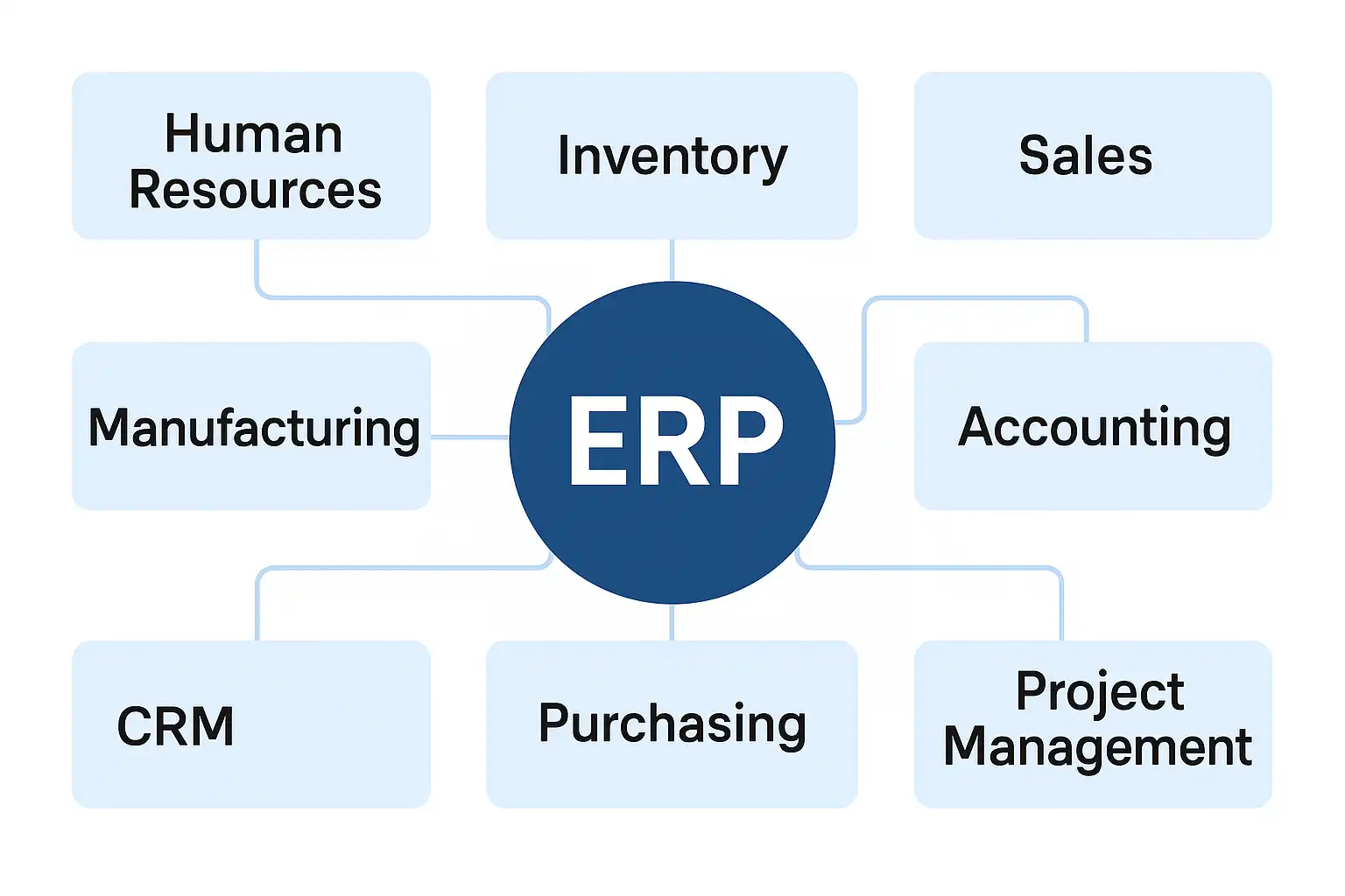 ERP(Enterprise Resource Planning,企业资源计划)系统是现代企业信息化建设的重要支撑工具。一个完整的ERP系统通常涵盖以下主要功能模块: