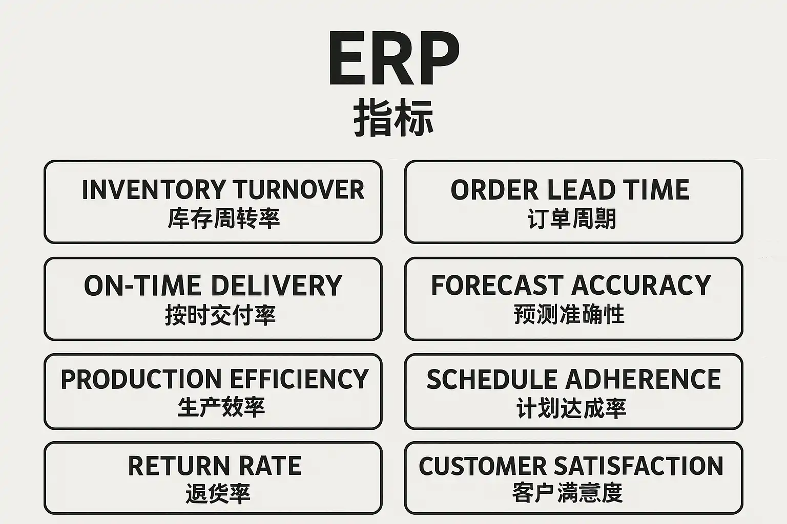 ERP(Enterprise Resource Planning,企业资源计划)系统整合了企业各部门的资源与流程,实现信息流通透明化和高效化。在实际应用中,科学设定并追踪关键绩效指标(KPI),是ERP项目成功落地的基础。下表汇总了ERP系统中常见且重要的各类关键业务指标: