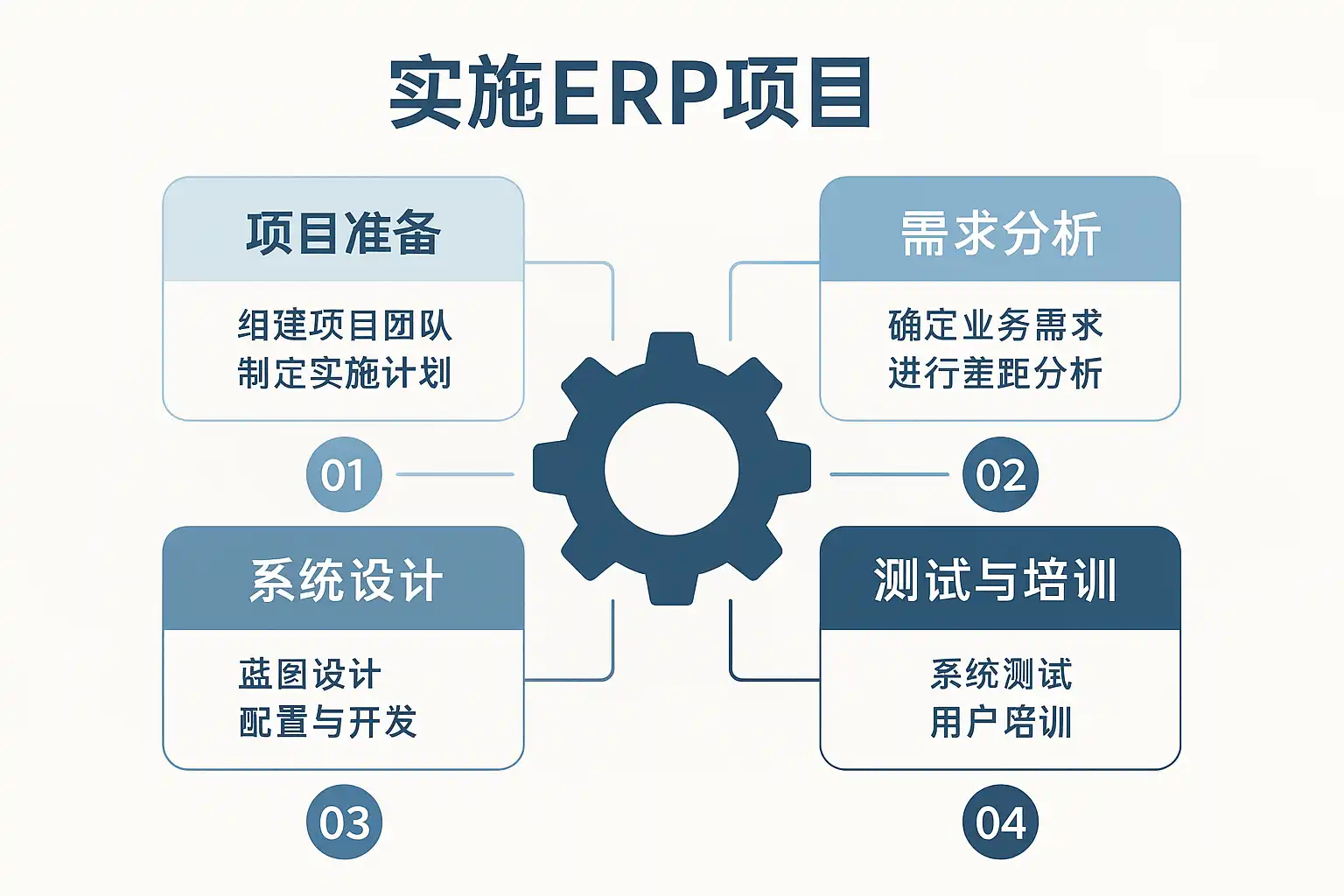 我最近听说ERP系统能提升企业管理效率,但具体实施流程是怎样的呢?我想了解一下ERP项目的关键步骤,避免在实施过程中出现纰漏。