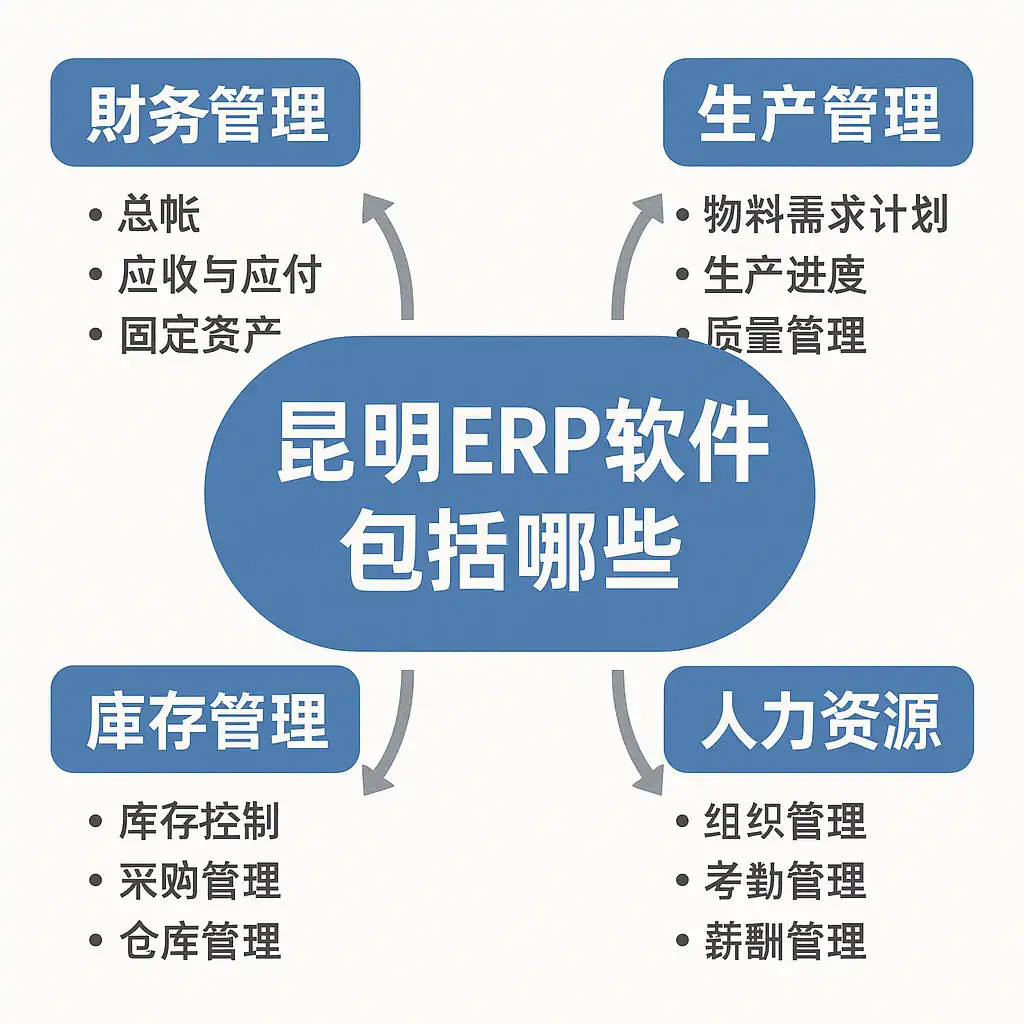 我刚开始接触昆明ERP软件,想了解它通常包括哪些核心模块?这些模块分别负责什么功能,能帮我理清整体架构吗?