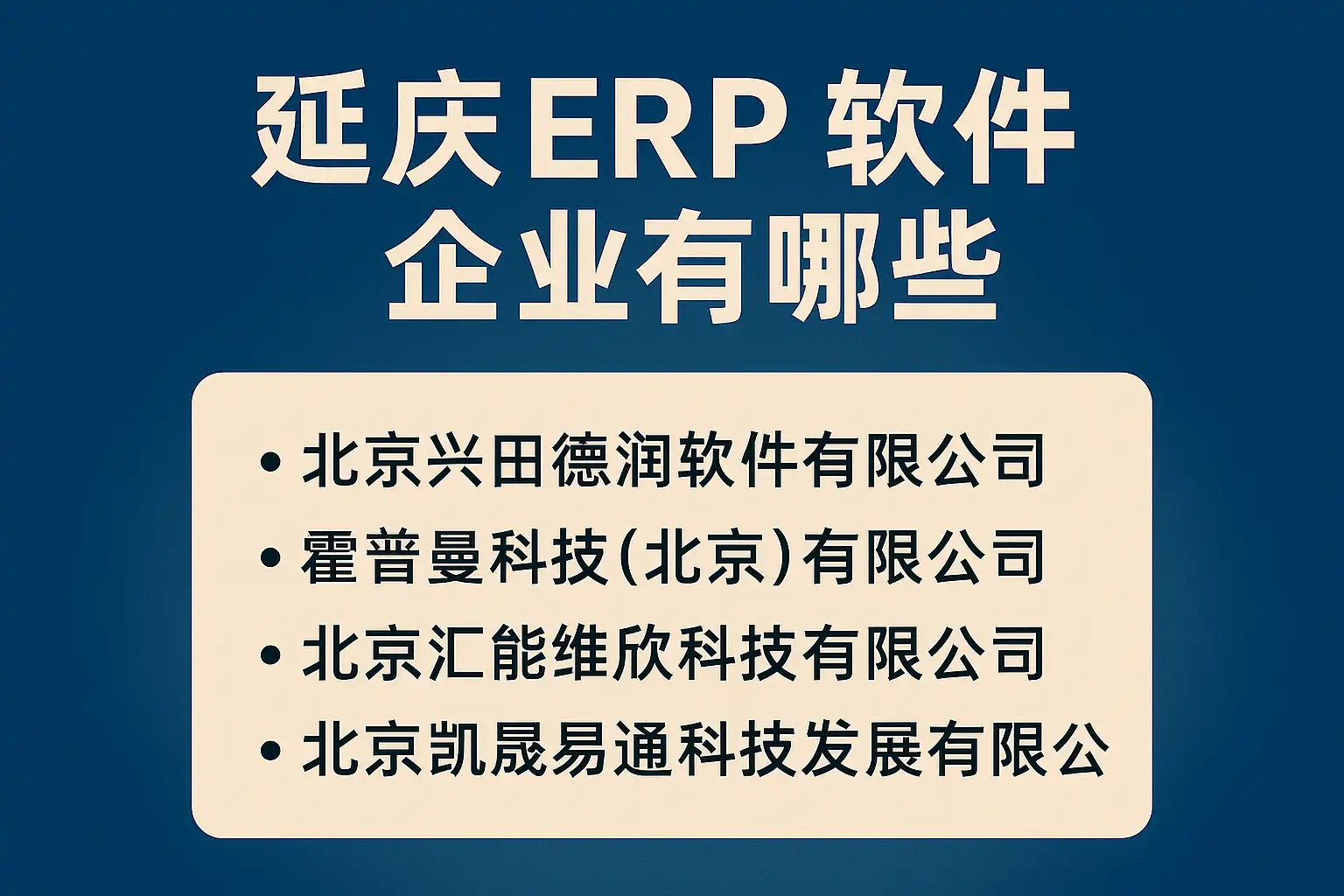- 国内大型ERP厂商分支:例如用友、金蝶等,在延庆设有分支机构,提供成熟稳定的产品。