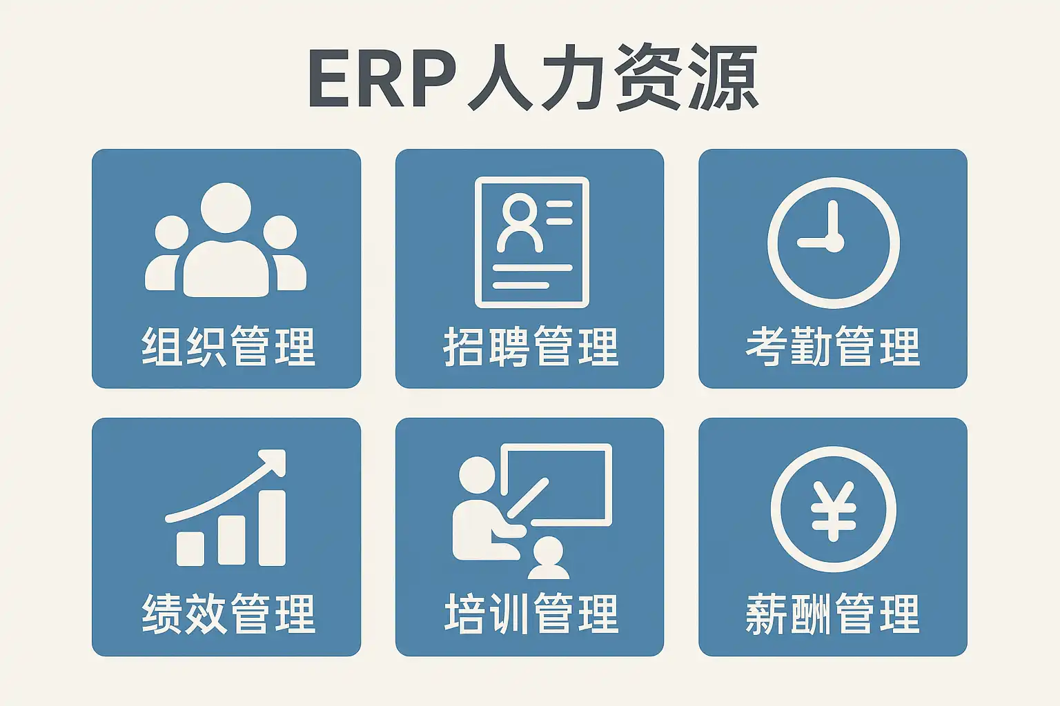 我在了解ERP系统时,发现人力资源模块很重要,但具体包含哪些核心板块不太清楚,想知道它们分别负责什么业务。