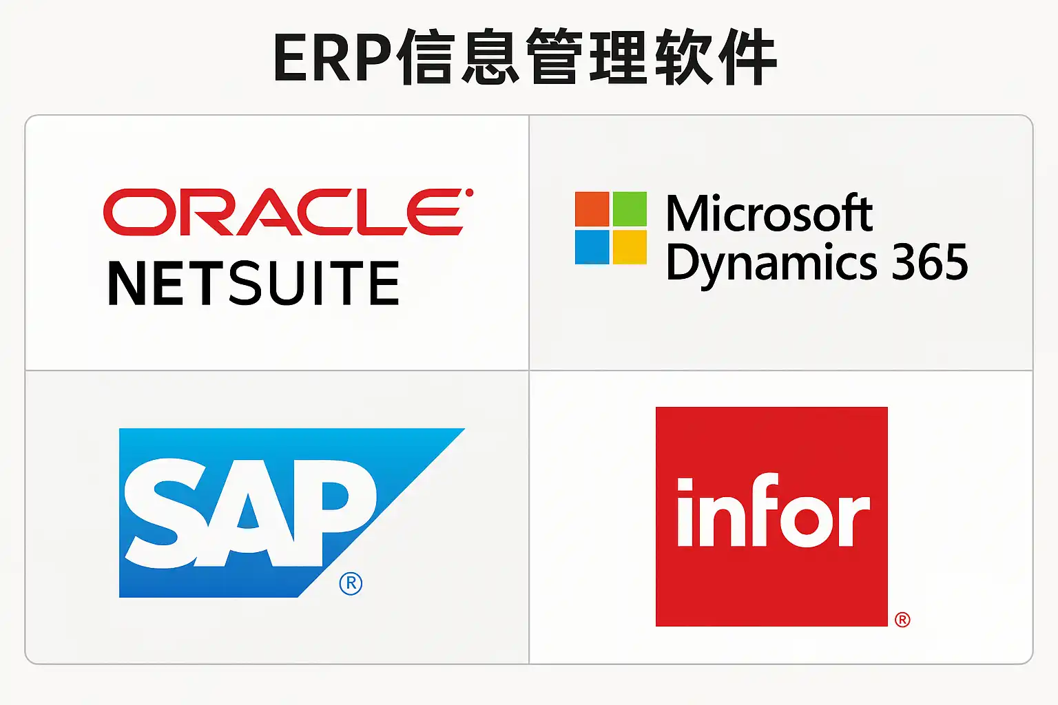 | Oracle E-Business | 强数据分析,多行业通用 | 跨国大中型企业 |