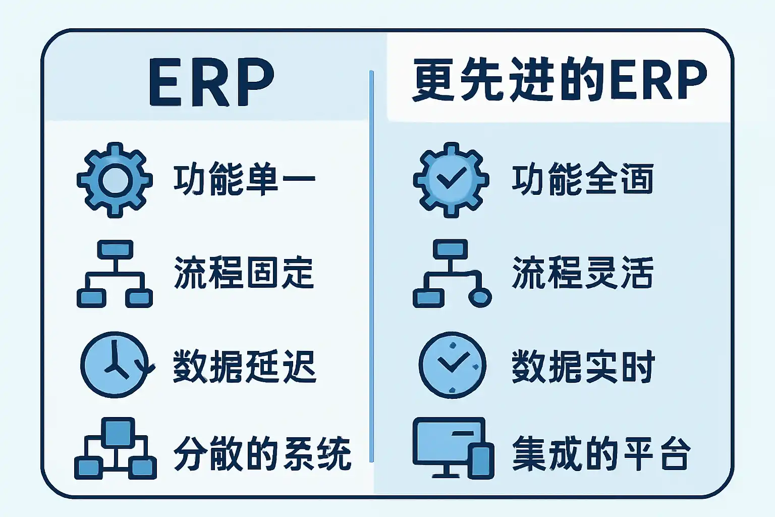 | 对比维度 | 传统 ERP | 新一代 ERP |