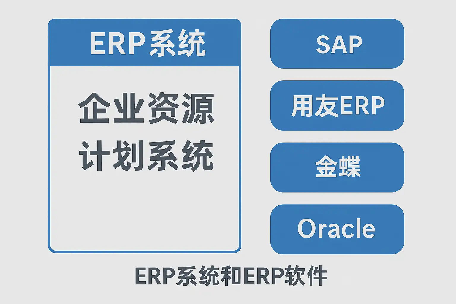 | ERP软件 | 支撑实现ERP系统功能的具体应用程序或平台 |