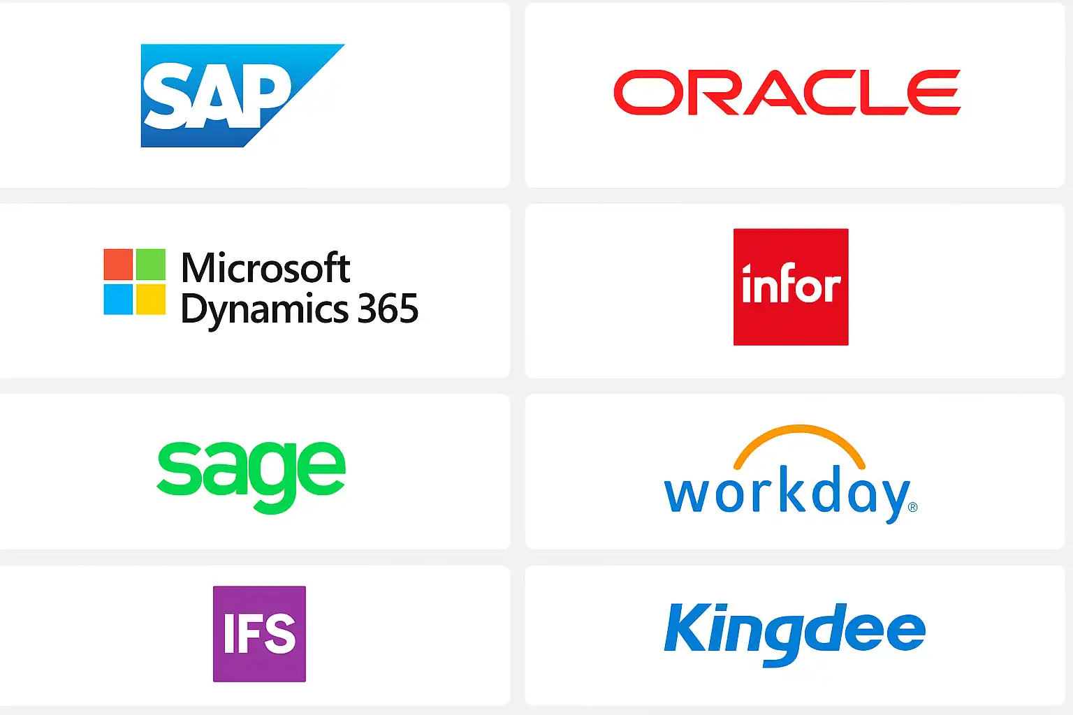 | 金蝶 | 中国 | 中小至大型 | 财务模块强,本地化优 |