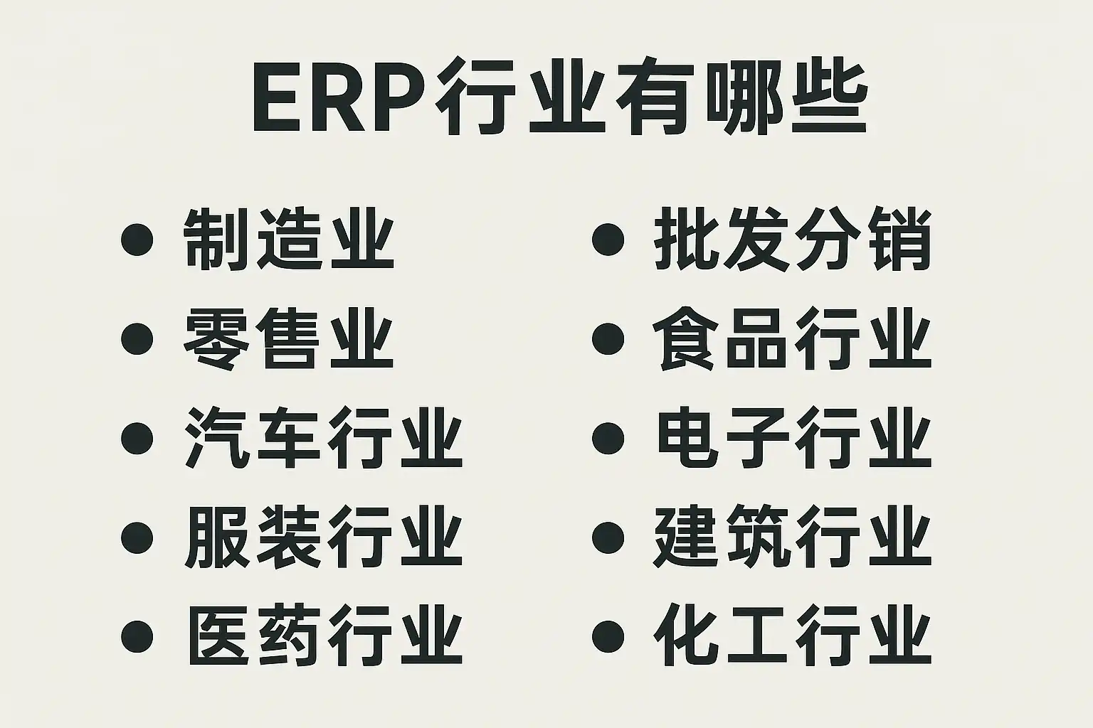 不同产业对ERP系统的关注点及功能需求各不相同。常见应用领域包括: