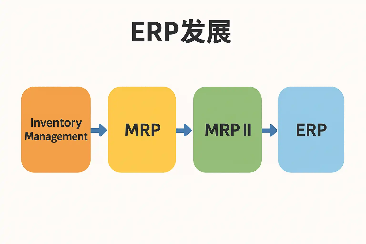 - 早期:以MRP(物料需求计划)为基础,仅支持生产制造管理。