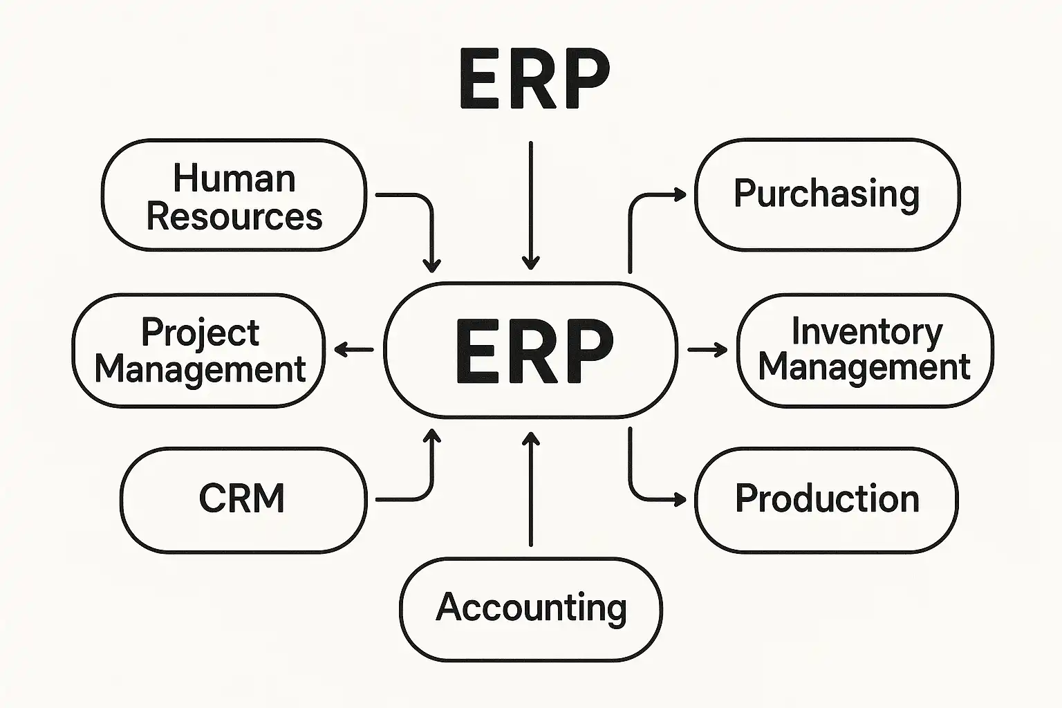 ERP系统将企业日常运营中的各项业务活动以模块化方式进行数字化处理,实现多部门协同与数据共享。下面是典型的ERP业务流程: