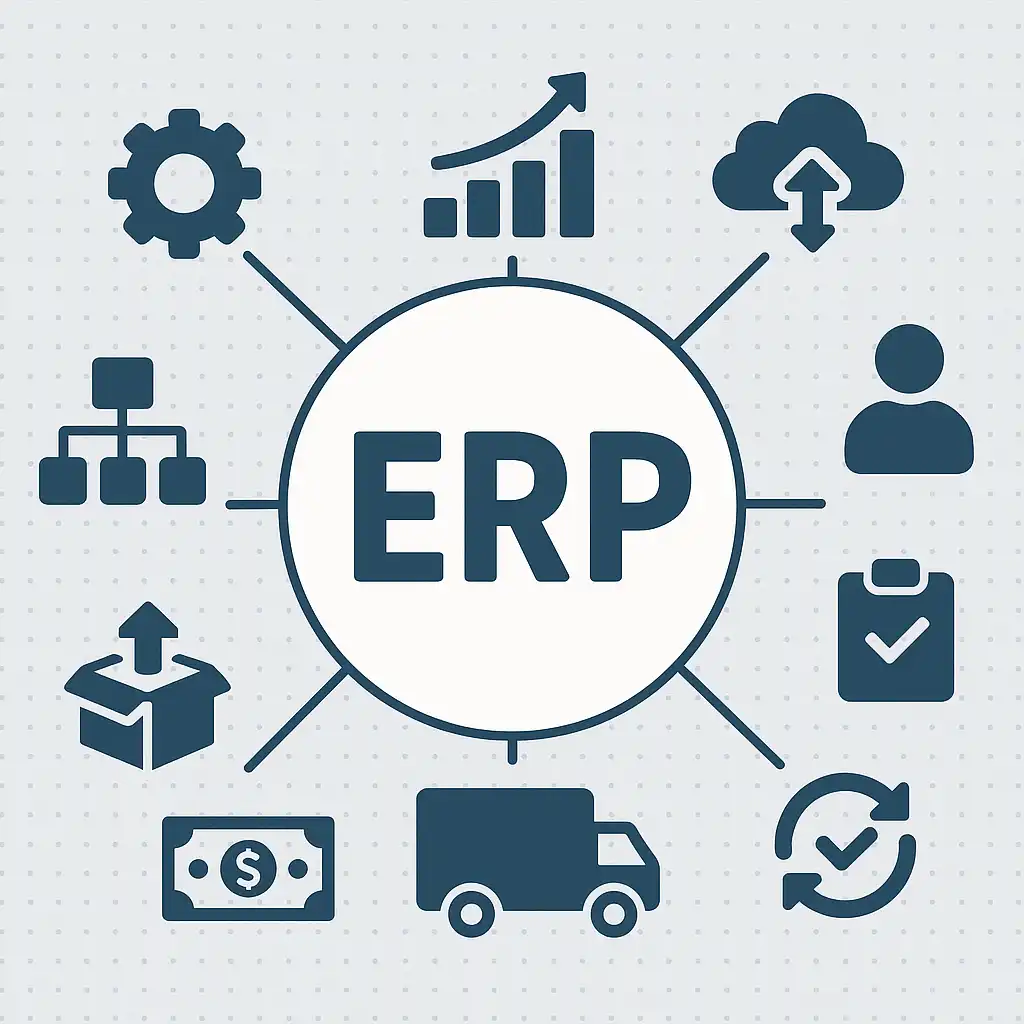 ERP系统中的图标设计旨在帮助用户快速识别功能模块。常见的ERP图标包括: