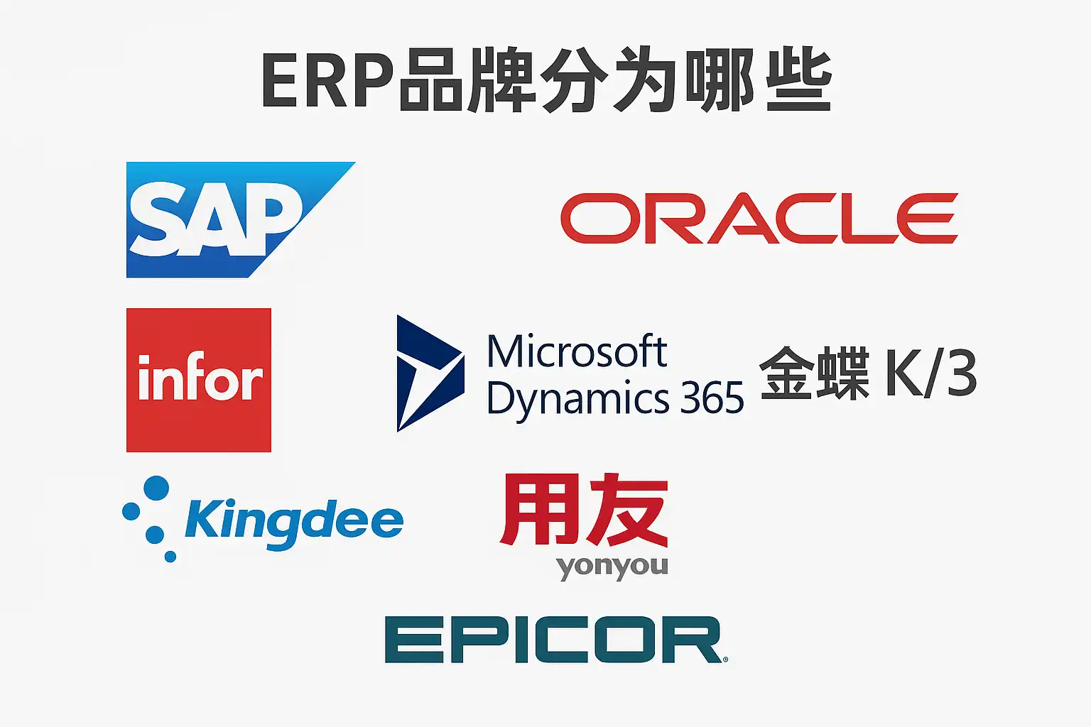 - 大型综合型ERP品牌,如SAP、Oracle,这类品牌覆盖广泛行业,功能全面。