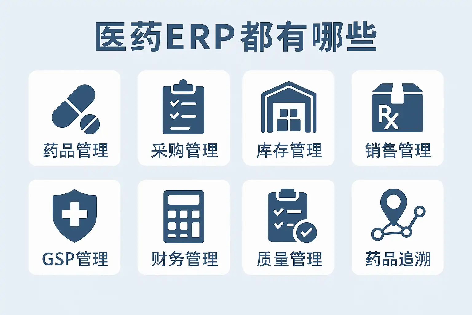 不同类型的医药ERP针对行业需求,一般都会涵盖以下核心功能: