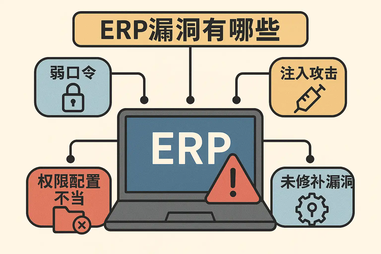 ERP系统由于业务复杂、集成度高,存在多种潜在漏洞。以下为主要漏洞类型及其具体表现: